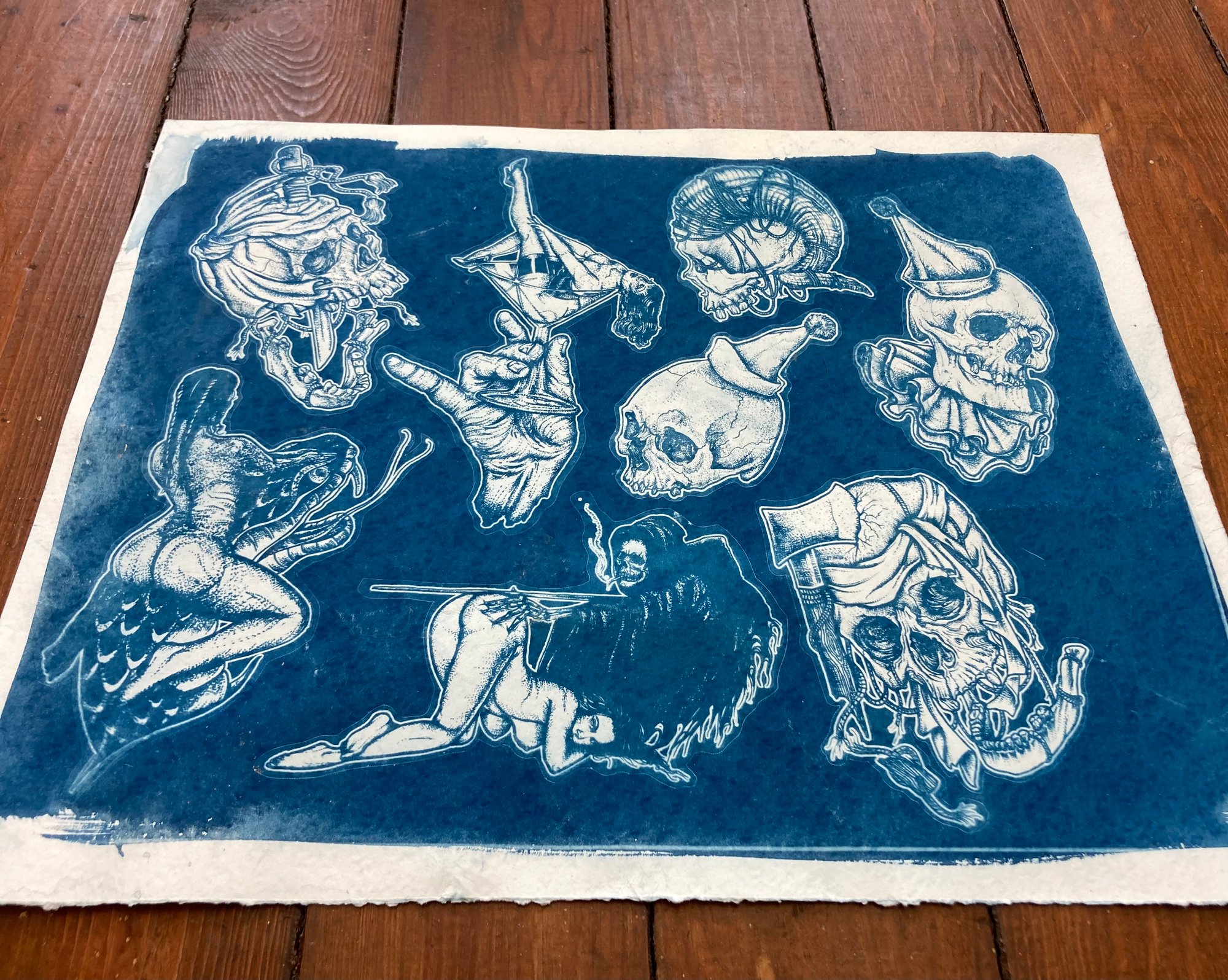 - Cyanotype tattoo flash. Made in the same tradition as Prof. Milton Zeis & Percy Waters.